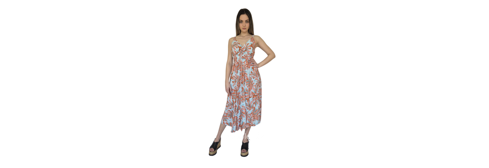 Βαμβακερό φόρεμα μακρύ με τιράντες